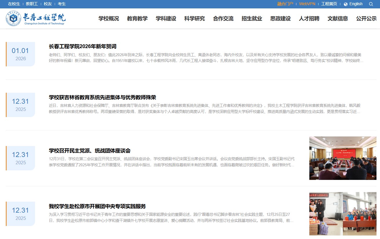 1月1日,我校新版学校门户网站正式上线运行,标志着学校数字化校园建设与对外形象展示进入新阶段,将为全体师生、校友及社会公众提供更优质、高效、便捷的线上信息与服务体验。