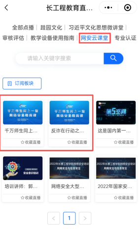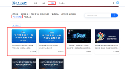 PC端:登录学校“融合门户”→直播平台→点播→网安云课堂。